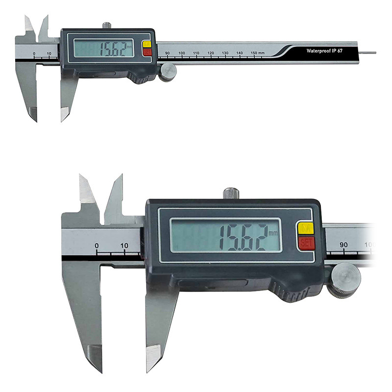 Digitális tolómérő, 0 - 200 mm, IP67, inox, 3V, mode/set gomb, DIN862