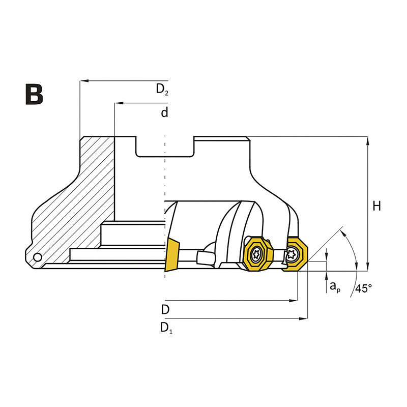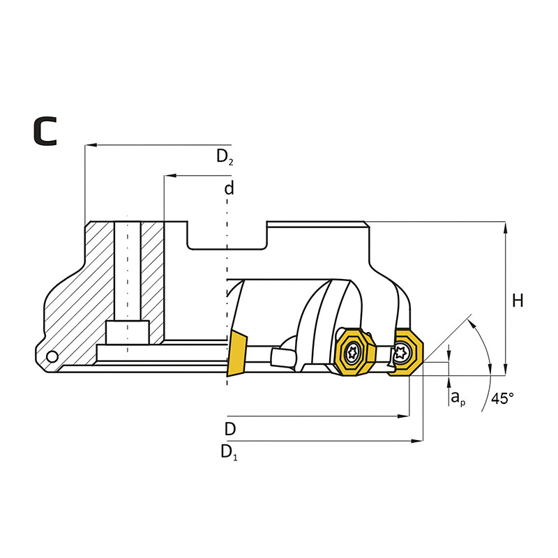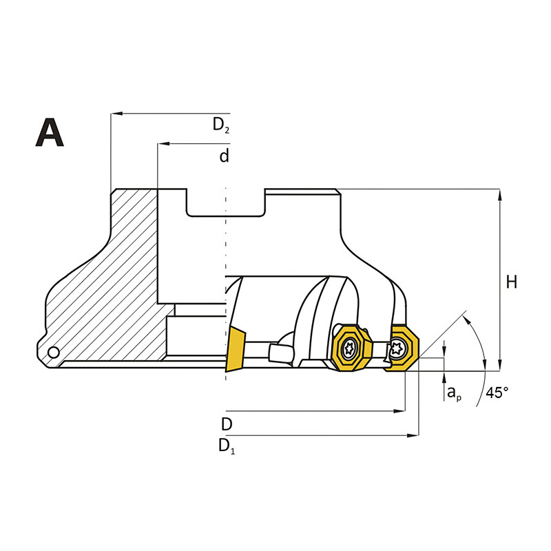 Feltűzhető síkmaró, 45°, Ø 50 mm, ODMT 0605 lapkás
