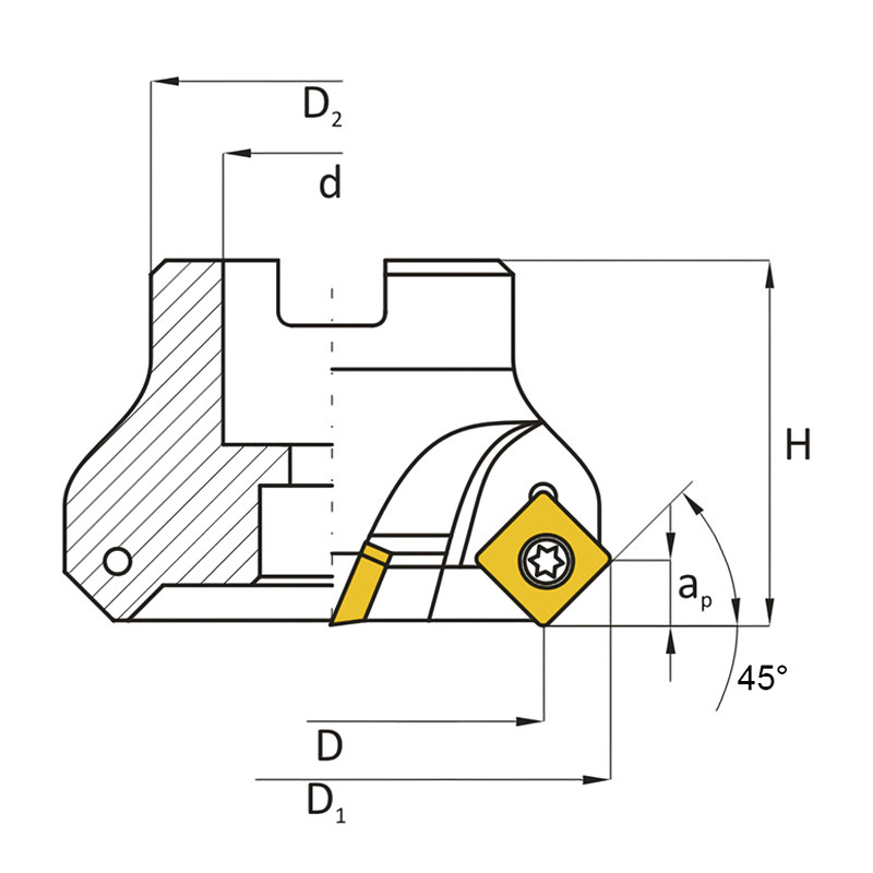 Feltűzhető síkmaró, 45°, Ø 50 mm, SEKT 1204 lapkás