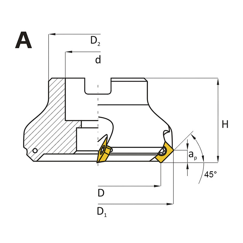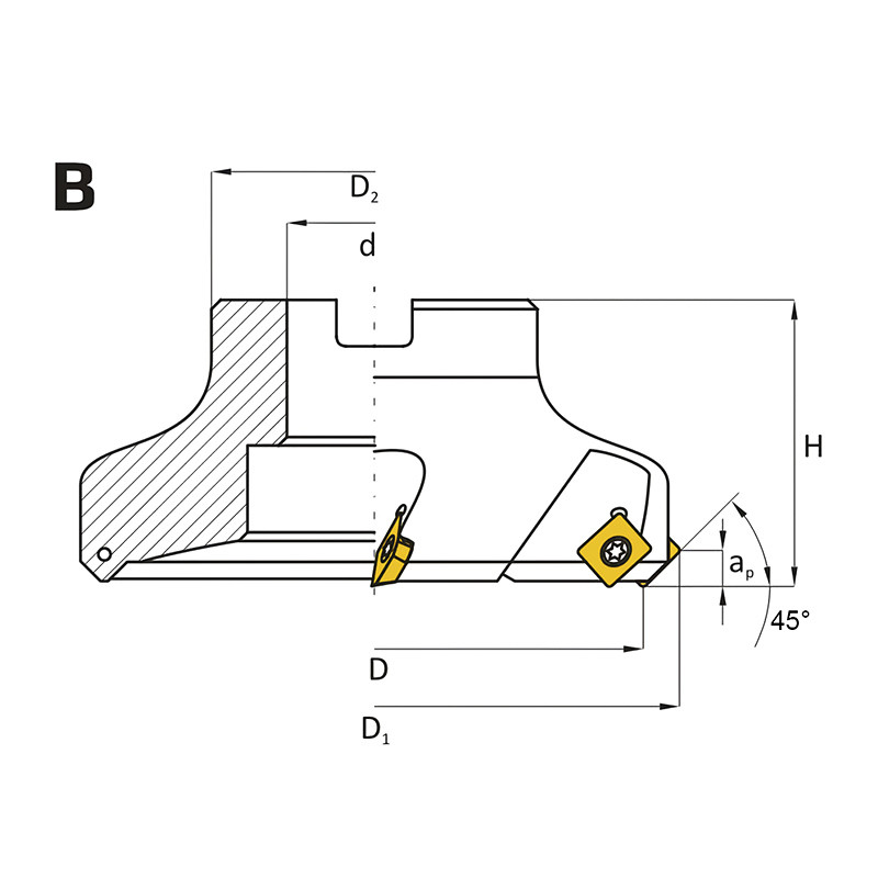 Feltűzhető síkmaró, 45°, Ø 63 mm, SEKT 12T3 lapkás