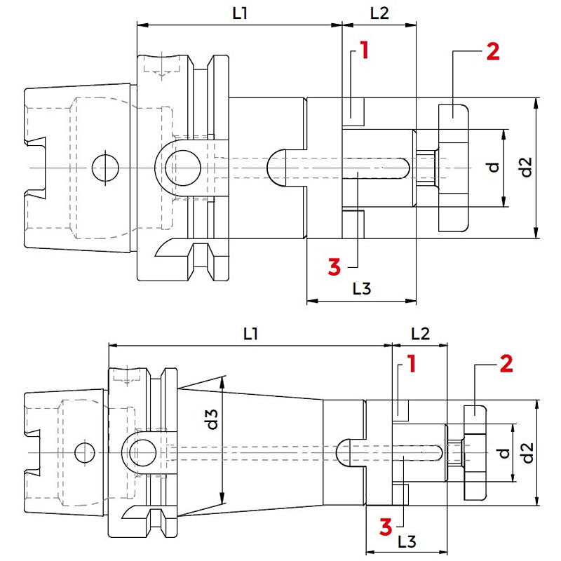 Kombinált marófelfogó tüske, HSK, DIN69893 A+C