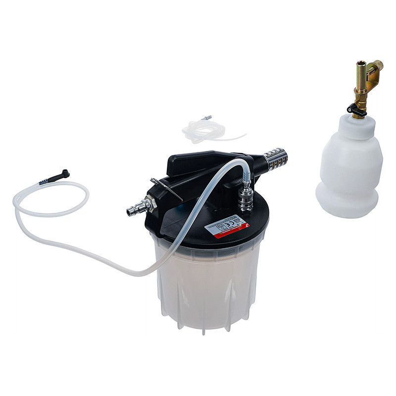 • 1 l-es utántöltő palack állítható elforgatható tartóval tartja a főhengertartályt a légtelenítési folyamat során feltöltve