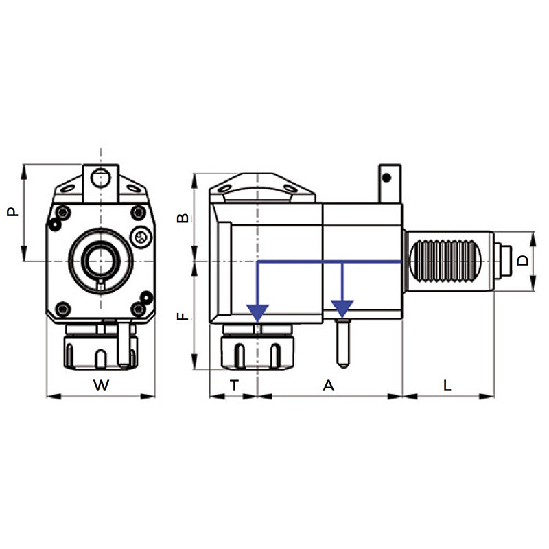 Meghajtott szerszámtartó, radiális, jobbos, VDI 40 / ER32 A80, DIN5480, KINTEK